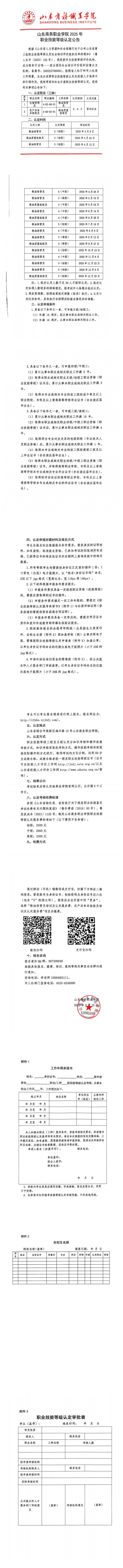 2025年山东商务职业学院职业技能等级认定公告